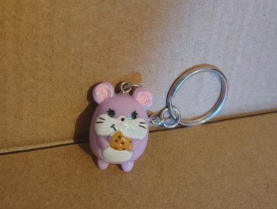 Purple Mouse Eating a Cookie Keychain Glitter Good Quality